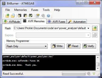 BitBurner AVR Programmer is a graphical front end for the command line program AVRdude. It is used to transfer programs and data to the Atmel AVR family of microcontrollers.