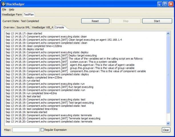 Blackbadger is a distributed ANT runtime for controlling and running tests against a large array of machines without complicated setup. Self-discovery and full Apache Ant integration, Blackbadger provides a distributed state machine.