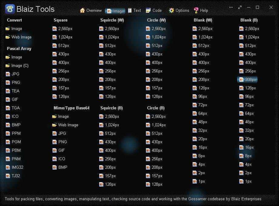 Tools for packing files, converting images, manipulating text, checking code and working with the Gossamer codebase and app source code.