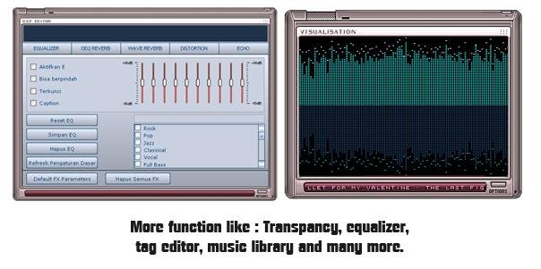 This application is a music player application is very practical and simple. Easy to use and the capacity that is not too big only 5MB. with this application you can play music whenever you want to store in flashdisc and opened on the computer without having to install it first. This application is still in the Indonesian version, but will be present in the english version in a few days.