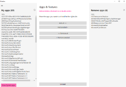 - Lists all built-in and third-party modern Windows apps and allows selecting which to remove