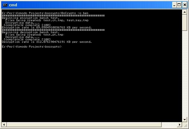 BoCrypto encrypts/decrypts files using one-time-pad keys. Mersenne Twist PRNG is utilized for the key stream. Features enc/dec benchmarking as well as 'duress' key generation. OTP encryption is the only unbreakable encryption, if implemented correctly.