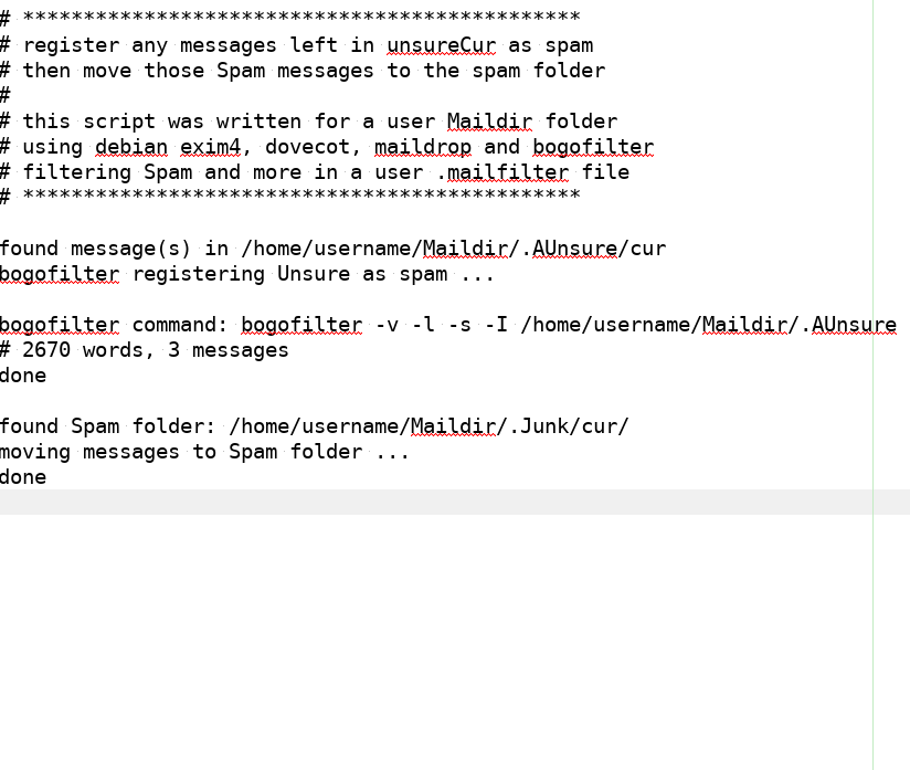 - Trains bogofilter to recoginze your Spam, not someone elses.