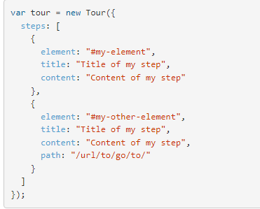 The easiest way to show people how to use your website. Bootstrap Tour is a quick and easy way to build your product tours with Bootstrap Popovers. Build the name of the storage item where the tour state is stored. The name should contain only alphanumerics, underscores and hyphens. You can initialize several tours with different names in the same page and application. You can dynamically reorient the popover by default by specifying auto for the placement, every time. Bootstrap Tour can be used to create tours that span multiple pages. If you have URLs for each page that have unique paths, and the dependencies are loaded on each page, you can easily create a tour. If you do not know the URL you wish to go to because it contains a different value per user or per instance, you can use a regular expression as the path attribute and set the redirect attribute to a function that performs the redirect.