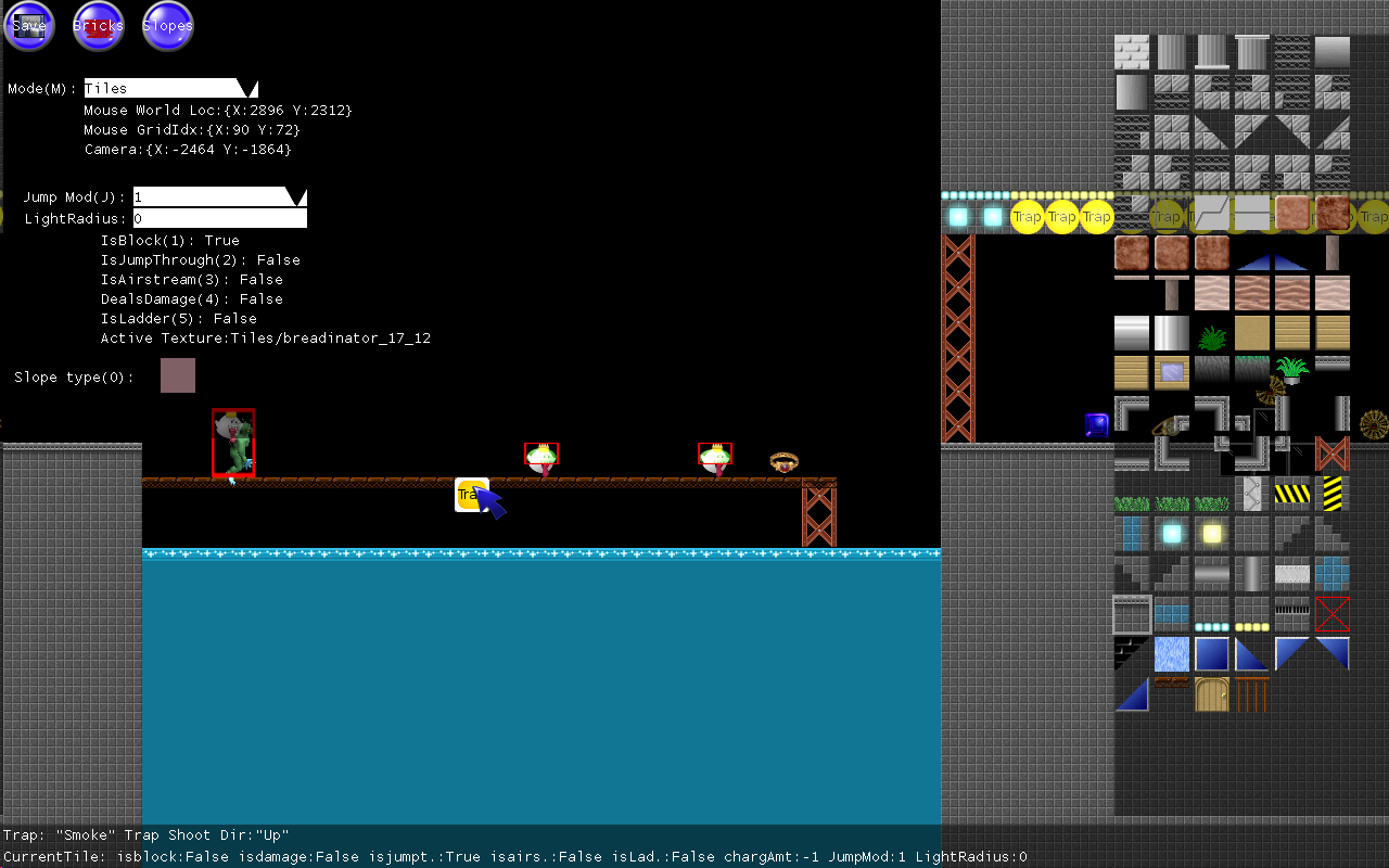 - Ladders, jump tiles and blockers, teleporters, movers, etc.