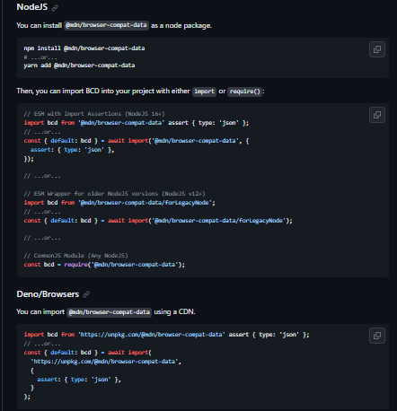 - You can import @mdn/browser-compat-data using a CDN