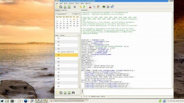 Café is an yagte (*) multipurpose, tabbed, scriptable, lightweight, fast, UTF-8 ready and full-featured text editor with IDE aspirations. Cafe' uses Perl as macro language. (*) yet another GTK+ text editor