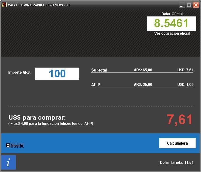 Aplicacion para realizar calculos sobre las compras en internet las cuales se ven afectadas por el impuesto de la AFIP en argentina, esto representa un 35% al valor de la compra.