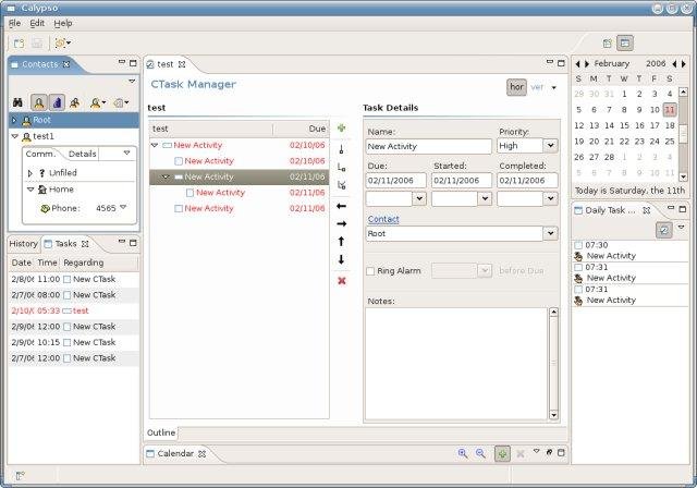 A Contact Manager similar to, Act!. More powerful than a PIM, simpler than an Enterprise CRM. Built on Eclipse RCP and includes custom SWT widgets - CDateTime (datepicker) and CCalendar.