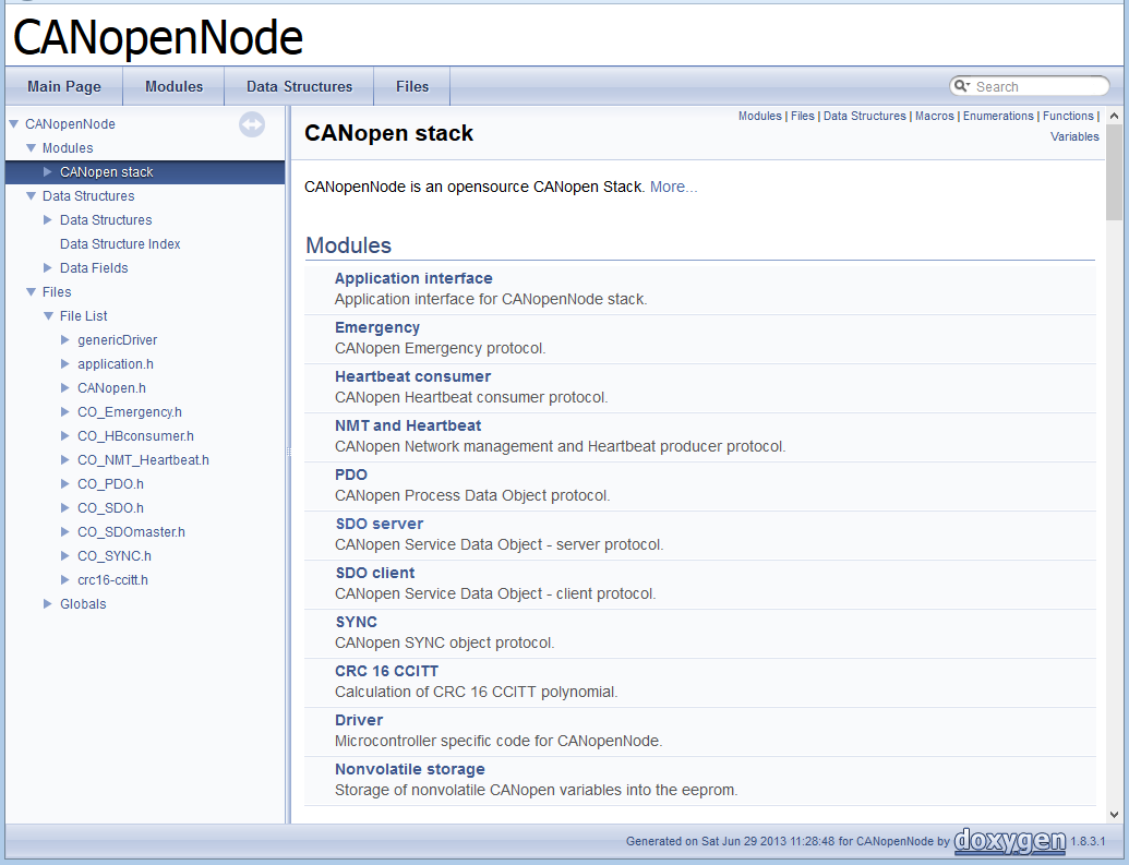CANopenNode is an open source software stack used for serial communication of multiple devices over the CAN/CANopen Network. It works on different microcontrollers, is reliable, simple and powerful and is suitable for industrial or home automation. CANopen is the internationally standardized (EN 50325-4) (CiA DS-301) CAN-based higher-layer protocol for embedded control system.