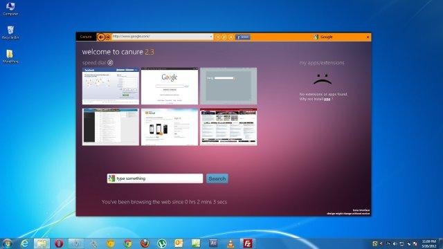 Canure is an web browser, lightning fast (even faster than Google Chrome!), stable and efficient. It's main focus is speed, and to be simple. It's powered by WebKit and it's being used by more than 5000 people worldwide.