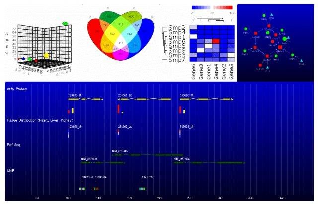 Javascript library based on the canvas tag for displaying Genomics data. It support Bar-Line graphs, 2D-3D scatter plots, Heatmaps, Venn diagrams, Networks, Genome Browser and much more. It also supports data transformations and event.