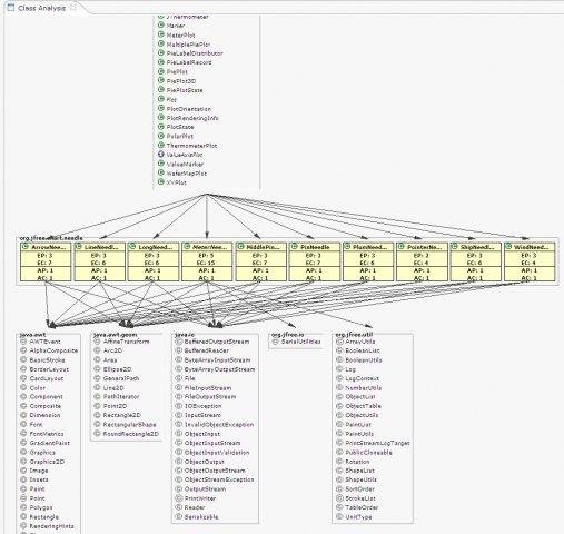 CAP (code analysis plugin) is an eclipse plugin (written in Java) that analysis your java project. It checks dependencies between the classes and packages and gives you a hint about the architecture, reusability and maintainability. ("JDepend 2")