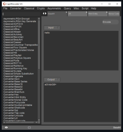 Captfencoder is a rapid cross-platform network security tool suite, providing network security-related code conversion, classical cryptography, cryptography, asymmetric encryption, miscellaneous tools, and aggregating all kinds of online tools. CaptfEncoder V3 develop by Rust, Executable programs are smaller, faster, better performing, and more powerful. CaptfEncoder V3 suport script extension.