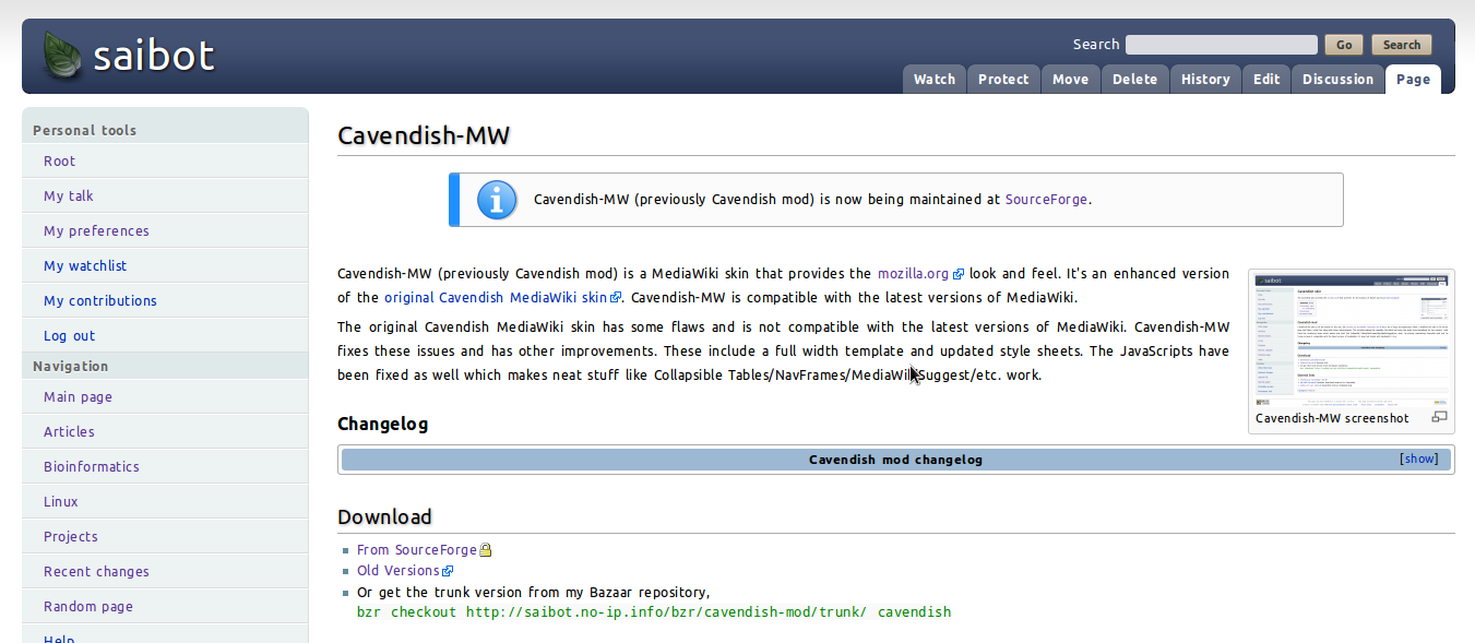 Cavendish-MW (previously Cavendish mod) is a MediaWiki skin that provides the mozilla.org look and feel. It's an enhanced version of the Cavendish MediaWiki skin. The latest Cavendish-MW is compatible with MediaWiki 1.21.0.