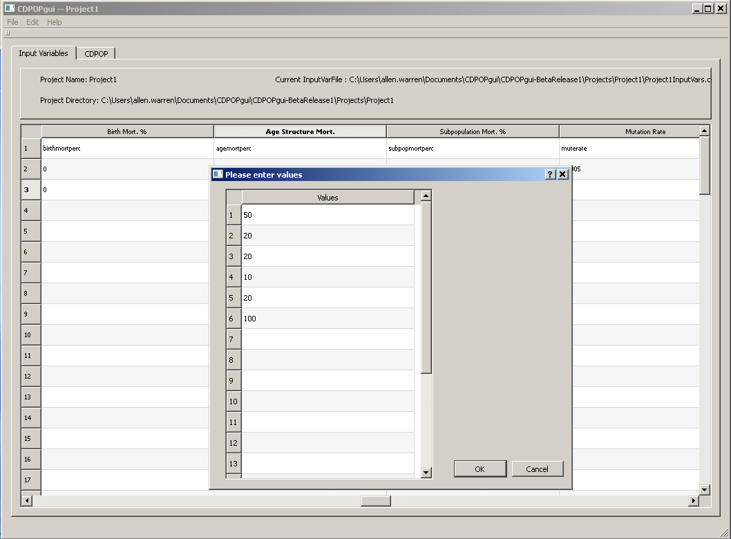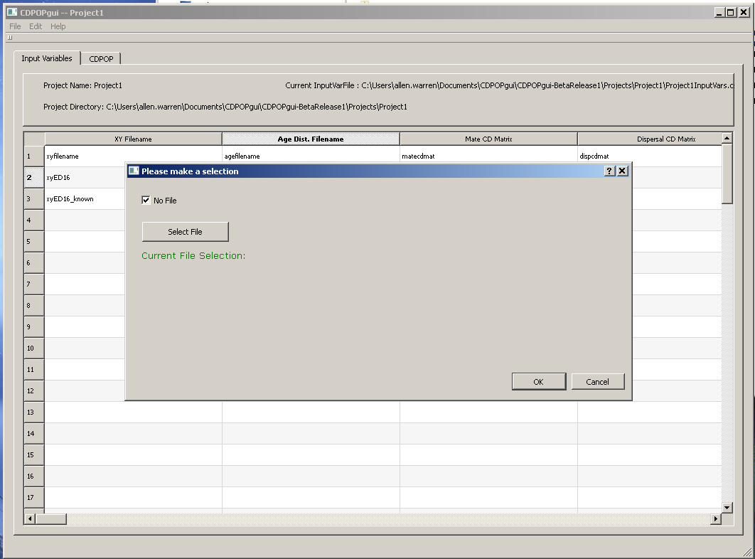 Allen Warren developed the GUI.The citation for this program is: Landguth EL, Cushman SA (2010) CDPOP: A spatially-explicit cost distance population genetics program. Mol. Ecol. Res. 10, 156-161. Updates to the software, including natural selection, can be referenced with Landguth EL, Cushman SA, Johnson NA (2012) Simulating natural selection in landscape genetics. Molecular Ecology Resources, 12, 363-368.