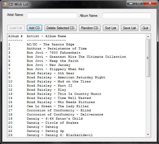 This program will store a list of music cds you enter. You can then have it select a random cd.