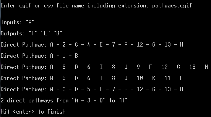 - CG feature reporting: pathways, cycles, inputs, outputs and multiple routes