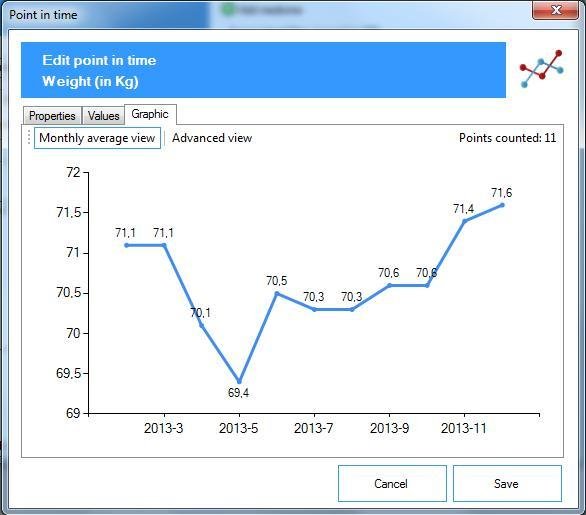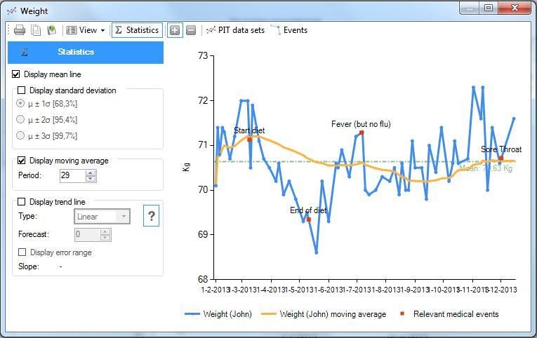 - Keep track of numeric data (e.g. Weight, Glucose, etc.) and correlate to events! Find out what the effect of that fever had on your weight!