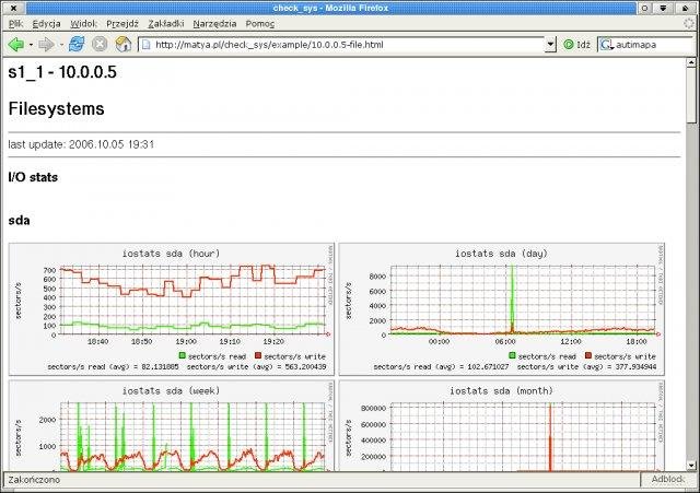 Check_sys is set of scripts written in Perl which can be used to monitor Linux servers (cpu, memory, swap, load, processes, network, filesystems, uptime, disks' I/O). It collects data and stores it using RRDTOOL library. It can log events through syslog