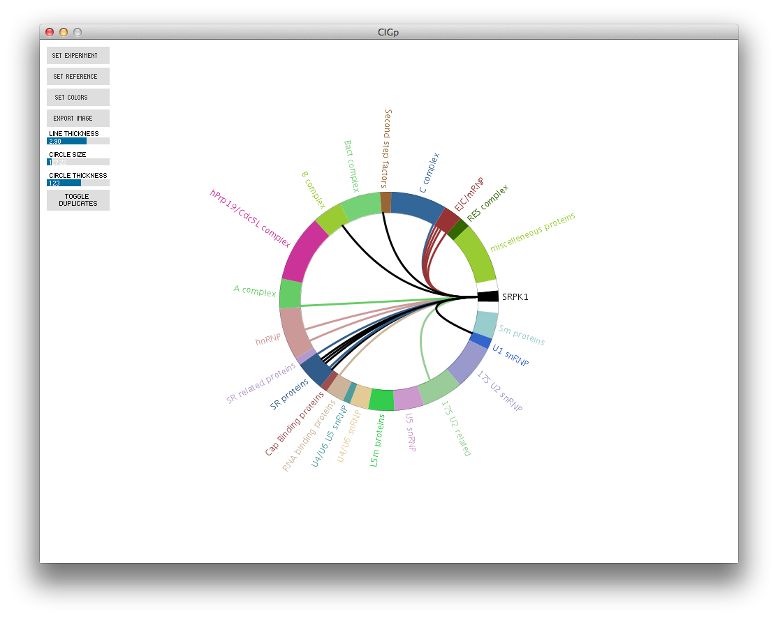 CIG-P is a higher order visualization tool for AP-MS which generates intuitive circular diagrams for visually appealing final representation of AP-MS data. CIG-P can be used to compare a) different AP-MS datasets of various baits or b) a particular bait under various perturbations (lenticular section CIG-P). The output of CIG-P is a simple and intuitively easy to grasp visualization of a complex dataset.