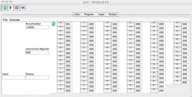 The purpose of the cinc project is to develop an emulator for Bell Labs' Cardiac (cardboard illustrative aid to computation) computer. The main product from this project is a Java program called jcinc.