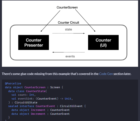- Circuit’s core components are its Presenter and Ui interfaces