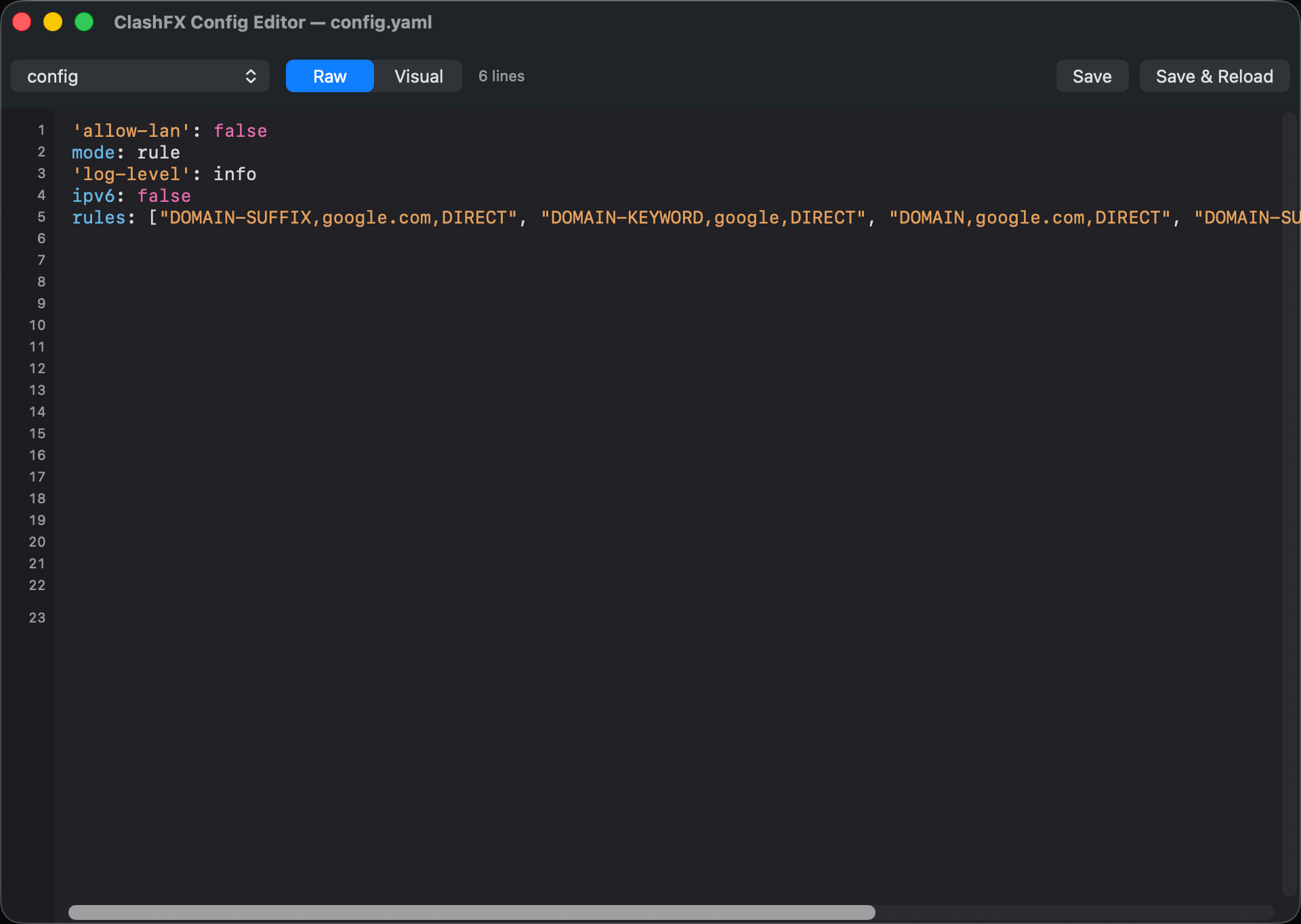 ClashFX is a macOS proxy client built on the mihomo core. It provides TUN-based enhanced mode for system-wide traffic routing, a built-in YAML editor with syntax highlighting, visual config editor, one-click remote subscription import with auto-update, and flexible rule-based routing supporting domain, IP-CIDR, GeoIP, and process matching. Supports VMess, VLESS, Trojan, Shadowsocks, Hysteria2, WireGuard, and more. Lightweight menu bar workflow with real-time speed display. Compatible with macOS 12+ and native Apple Silicon support. Available in 5 languages (English, Simplified/Traditional Chinese, Japanese, Russian).