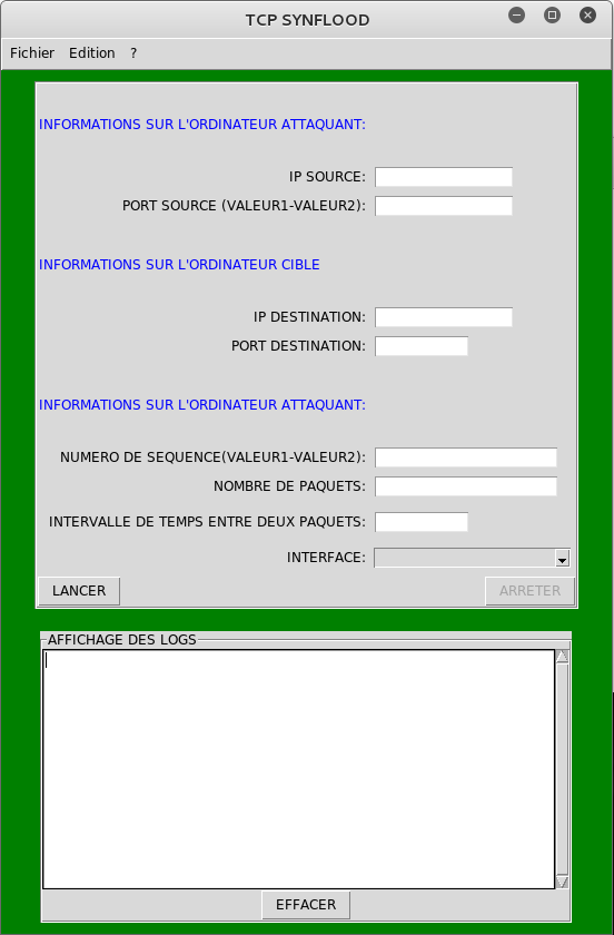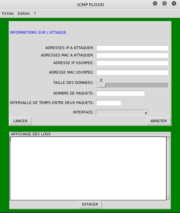 CLASS_DOS_ATTACKER is a tool written in PYTHON (in a Linux environment) to perform 5 Denial of Service Attack on a LAN: