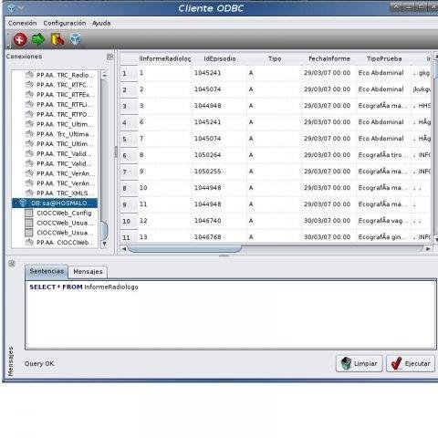 clienteODBC is an aplication for connecting to MS SQL Server databases via ODBC datasources It's based on Qt 4.5 Opensource edition. This application has been compiled under GNU/LiNUX and Windows. Now you can browse MS SQL Server databases from LiNUX!