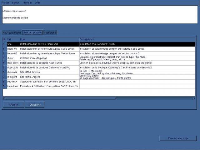 CMP-Gestco est un logiciel de gestion commerciale destiné aux petites sociétés. Il gčre vos clients, vos fournisseurs et vos produits, génčre et imprime des factures et des devis, gčre votre stock. Il peut aussi servir en point de vente.