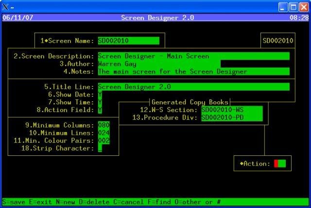 This project consists of a Cobol interface to curses(3X) using a Screen Designer utility. This project is being developed for use with the Open-Cobol compiler project.