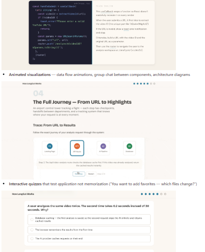 Codebase to Course is an AI-powered development tool that converts any software repository into a fully interactive educational experience presented as a self-contained HTML course. It is implemented as a skill for Claude Code and is designed to help users understand how a codebase works without requiring a formal computer science background. The tool analyzes the structure and behavior of a project and generates a visually rich, scroll-based course that includes diagrams, animations, and contextual explanations. It pairs real code with plain-English interpretations, allowing learners to follow execution flows and grasp concepts intuitively. The generated course also includes interactive quizzes and glossary tooltips to reinforce understanding through application rather than memorization. It is particularly targeted at “vibe coders,” or users who rely on AI tools to build software but want deeper insight into how their projects function.