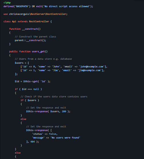 CodeIgniter RestServer is a fully RESTful server implementation for CodeIgniter using one library, one config file and one controller. CodeIgniter Rest Server is available on Packagist (using semantic versioning), and installation via composer is the recommended way to install Codeigniter Rest Server. Note that you will need to copy rest.php to your config directory (e.g. application/config)