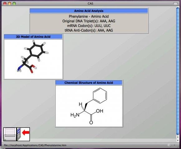This application transcribes basic codons and tells you the amino acid it codes for, the tRNA anti-Codon, and give you a 3D structural model of the amino acid and 2D picture of its chemical structure. Analysis reports can then be printed by the user.