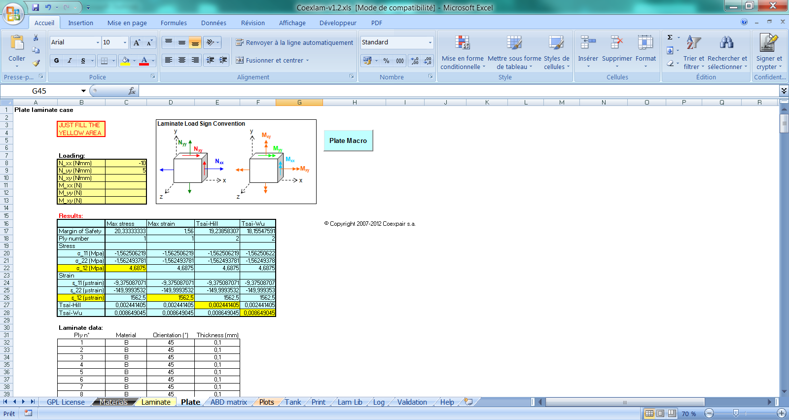 Free Excel software on composite laminate theory with added features.