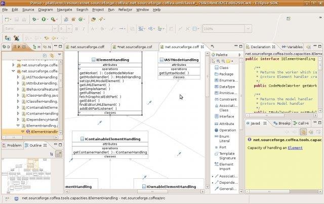 This project is an eclipse plug-in aiming to link the eclipse UML2 tools to the eclipse JDT. The leading idea is to use the UML editors as code editors. With a reverse engineering functionality, avoiding a generation process allows to use easily UML