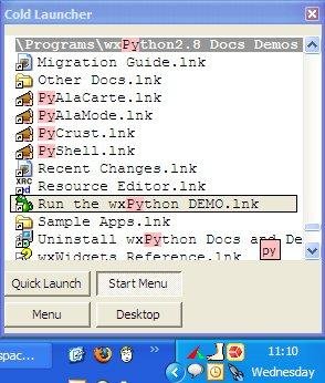 Cold Launcher - Keyboard/search driven program launcher written in Python+wxPython for Windows XP/Win32. Allows quick launching of programs without using the mouse and by searching.