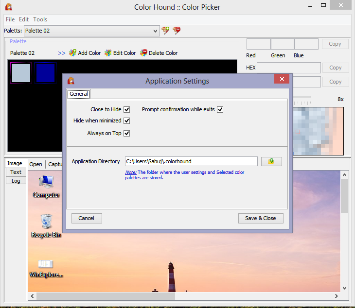 ColorHound is a pure java color picker application developed using Java-Swing. As the programming language is Java, this tool is also platform independent. It can be used in anywhere provided, JVM is installed. This tool is distributed in a .zip format, so no installation required.
