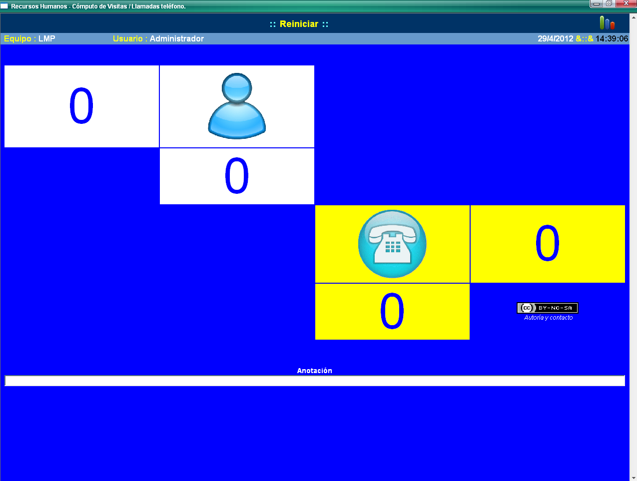 Computadores de visitas y llamadas telefónicas. HTA+VBA+javascript+Excel