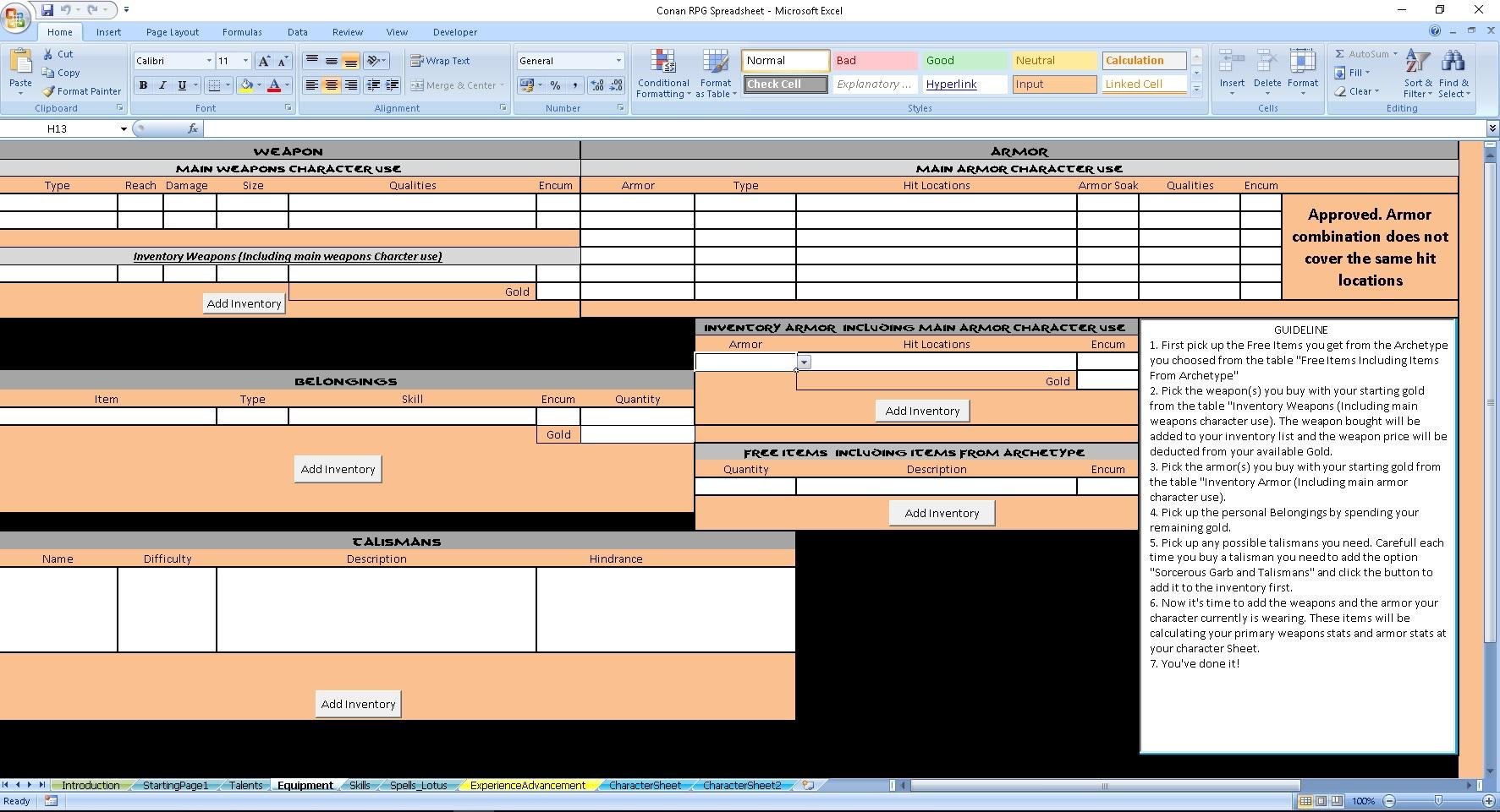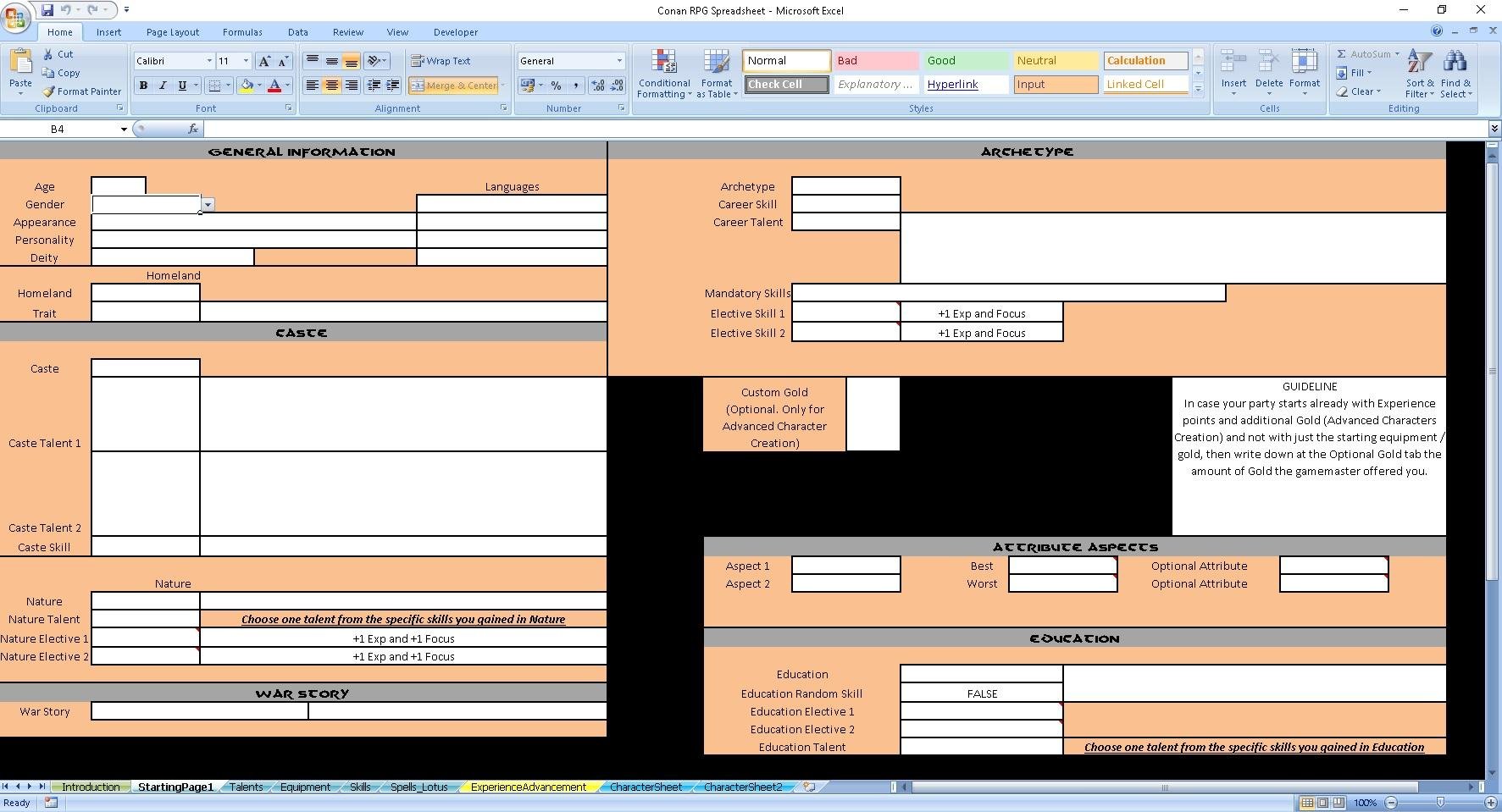 - Guidelines on how to use the Spreadsheet properly