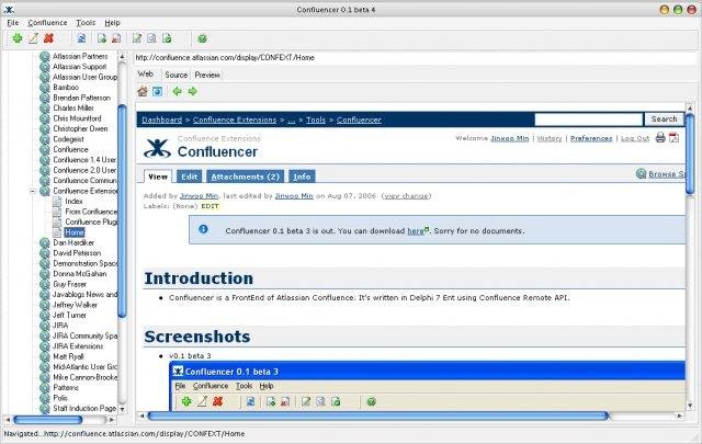 Confluencer is a FrontEnd of Atlassian Confluence. It's written in Delphi 7 Ent using Confluence Remote API. Confluencer.NET is written in C#. http://confluence.atlassian.com/display/CONFEXT/Confluencer