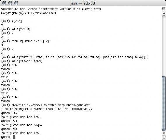 ConteX is an expiremental programming language created by Rex Ford. Commonly referred to as 'CX', ConteX has the main goal of making reflections as natural as possible, while having a very consistant syntax.