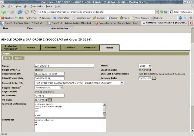 Contrack is a web-enabled order-centric management software that supports the planning and management of the order's complete life-cycle. It supports order entry, contacts management, production planning and tracking as well as financial monitoring.