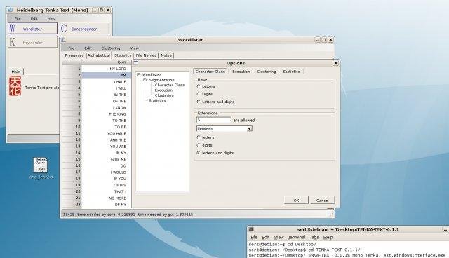 An open-source corpus analysis class library written in C#. GUI of Tenka Text 0.1.3 comes with Wordlister - an advanced, extremely fast graphical wordlist tool and a simple regex concordance tool. Tenka Text - the open-source answer to WordSmith Tool