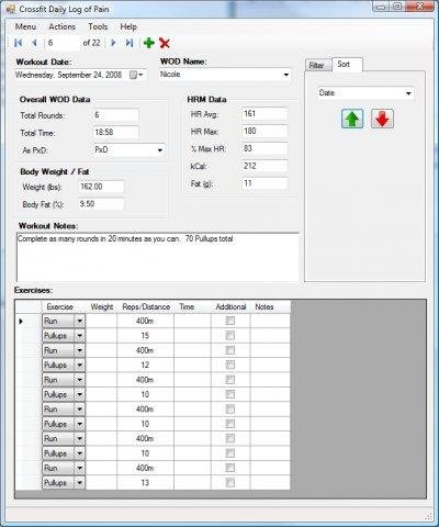 C# based program to track workouts based around Crossfit. Open SQL Server Express based database construction allows for user customization.