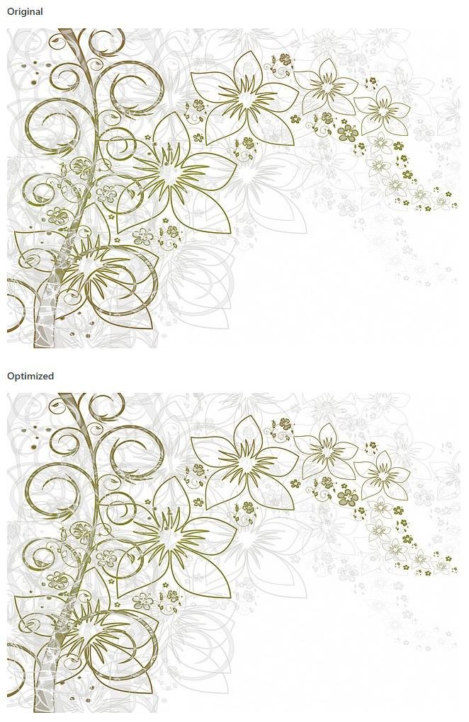 - Aggressive space-saving optimization, with minimal loss of image quality