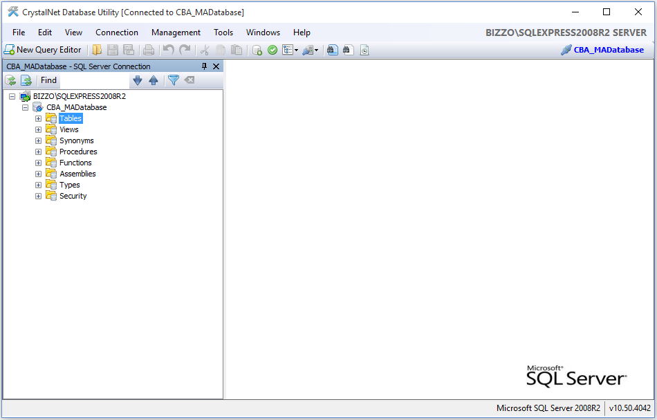 CrystalDB Tool is used by developers, DBAs and analyst for managing, administering and developing databases. The utility supports the two common database management system, namely MS SQL Server and Oracle. It provides an editor that offers code completion and syntax highlighting for standard SQL. It features a connection browser and a comprehensive set of database administration tools.