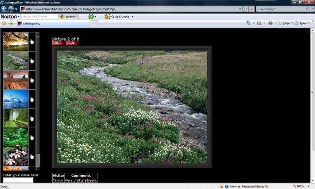 Simple and very customizable c#/.NET photo gallery that reads files into an array and allows the user to navigate through them using .net controls. Access database is also included that allows visitors to add comments to any photo. Enjoy!