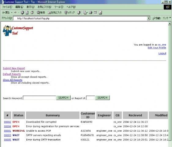 Customer Support Tool (cstool) is a web based customer report management tool, based on PHP, using MySQL as the backend for data storage. It is more geared for use by not technically-inclined Customer Support and is easy to use and install.